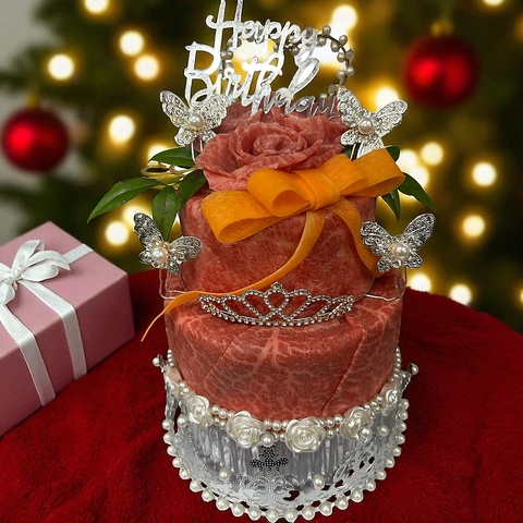 待望の肉ケーキがついた記念日コース誕生!見た目はもちろん黒毛和牛雌牛、A5等級12番を使用した肉ケーキに、塩タン、ホルモン、サイドまでついた贅沢コースがなんと2人で14300円(税込)!要予約で大好評の名前ポエムもお作りいたします!世界に一つのサプライズを考えている方必見!もちろん普段使いにも!