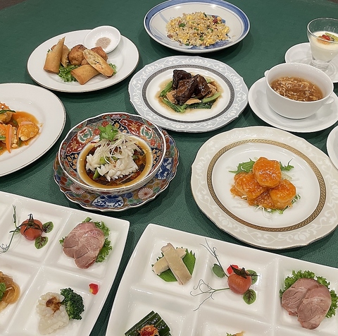 腕を磨いた熟練の料理人たちが作る、目で舌で耳で楽しめる本格中華。産地直送の旬食材を惜しげもなく使い、一番おいしい調理法で料理を完成させます。苦手な食材や辛味・酸味の加減などもお気軽にお申し付けください。神戸で唯一、ベジタリアンメニューにも対応している中華料理店でもあります。