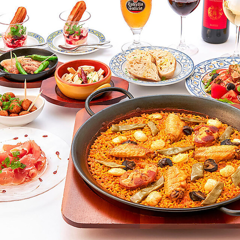 【飲み放題付パーティープラン】選べるパエリアの全8品メインコース&2時間飲み放題付6,980円【テーブルチャージ&消費税込】