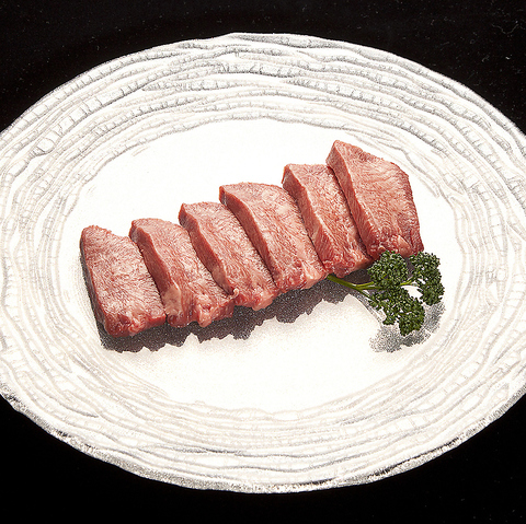 写真の厚切りタン塩のように、トラジでは創業以来、お肉は厚く切ったほうが素材の旨みがダイレクトに伝わるというこだわりのもと、当時としては珍しかった厚切り焼肉を提案してまいりました。”焼肉正統”をスローガンに、本来の焼肉の素晴らしさを正しく伝える焼肉店として、一線を画したサービスを提供しております。