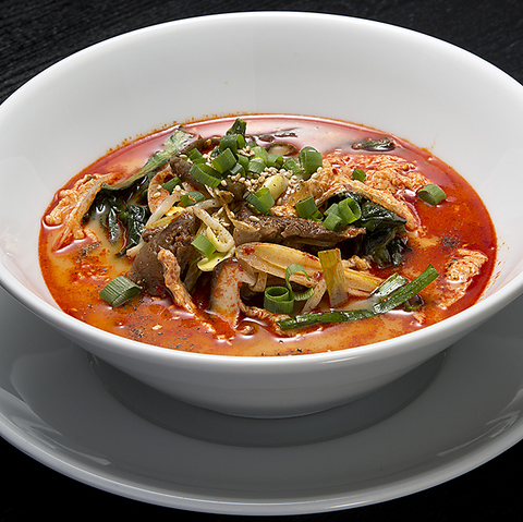 トラジオリジナルのユッケジャン麺はクセになる辛さで美味しい、女性に大人気の一品◎ぜひご賞味ください!