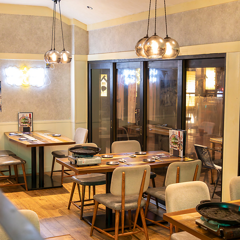 開放感のある高めの天井とまるでカフェのような雰囲気のおしゃれな内装が特徴。女子会や飲み会にぴったりのお店です。単品料理も充実◎刈谷で美味しい韓国料理を食べるならカブ韓へ♪飲み放題付きコースは3,990円(税込)からご用意しております!
