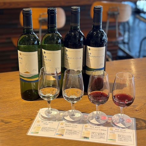 | ★プレミアム飲み放題プランメニュー★こだわりの日本ワイン8種を追加! | 【北海道】余市ケルナー辛口、余市ツヴァイゲルトレーベ【長野】長野シャルドネ、長野メルロー【山梨】甲州辛口、甲斐ノワール【岡山】岡山マスカット・オブ・アレキサンドリア<薫るブラン>、岡山マスカットベーリーA<樽熟成> |