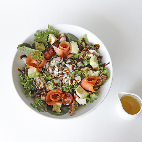 新鮮な野菜を贅沢に使ったサラダはボリューム感満載。トッピングも自由自在、メインを張れる一品です。