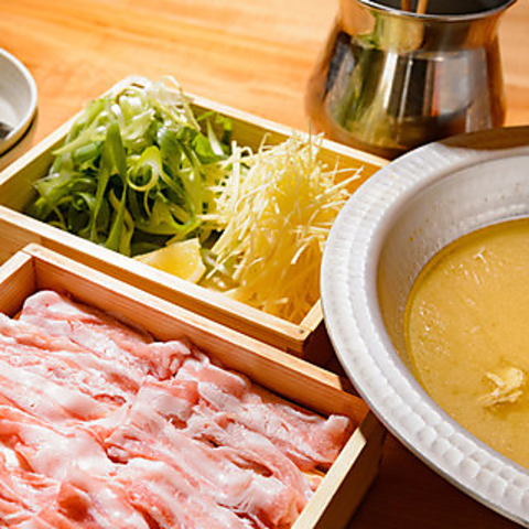霧島豚と九条葱の白湯しゃぶしゃぶは、鶏の旨みを煮込んでとった白湯スープで召し上がっていただきます。