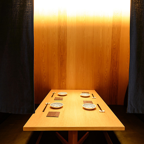 洗練されたカウンター席は、料理人の包丁さばきを間近で楽しむ特別な空間です。温かみのある木のテーブルと落ち着いた照明が、心地よい雰囲気を醸し出し、リラックスしながら食事を楽しめます◎ 一人でも気軽に立ち寄れるので、仕事帰りや休日のひとときにぴったり! 料理の音や香りに包まれながら、五感で味わうひとときをお楽しみください☆