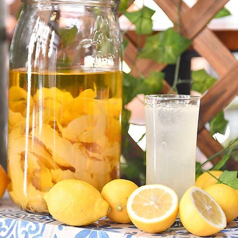 すーっとぬける柚子の爽やかな香り しっかりとした酸味とほのかな苦味が広がります。ソーダ割 715円 / スパークリング割り 748円