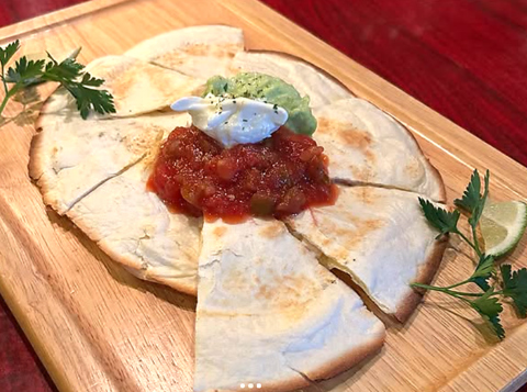 トルティーヤ生地で包まれたケサディアはサルサソースとワカモレと一緒にどうぞ♪