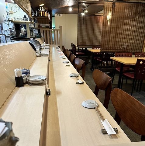 カウンターはどこか落ち着いた雰囲気を醸し出してくれます♪新鮮な食材や、めずらしい月替わりでお出ししている日本酒の数々に囲まれながら、お楽しみいただけます。住之江公園からほど近いうお家の魅力を存分に堪能してください!