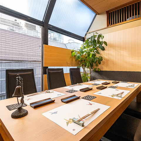 料亭の「粋」を感じることができるカウンター席。お一人様でも大歓迎!カウンター越しにスタッフと対面しながら会話ができる、かつ職人の技を間近で感じることができます!美味しいお酒と共に至福のひと時をお過ごしください。サク飲み、会社帰りの一杯!という際にも是非ご利用ください。大人のデートにも◎