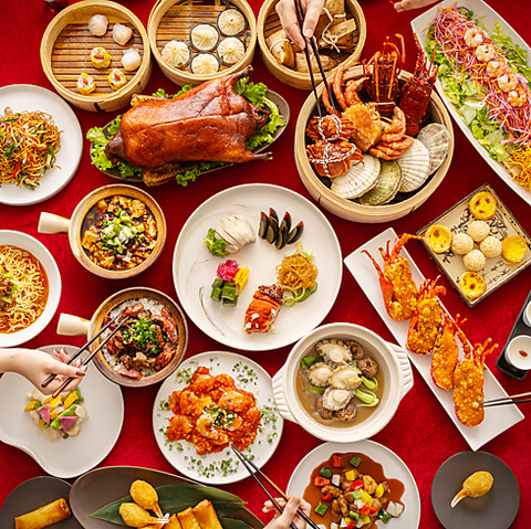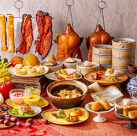 前菜からデザートまで食べ放題!「エビのチリソース」や「四川麻婆豆腐」など定番人気メニューに加えて、熟練のシェフが目の前で仕上げる北京ダックのカービングサービスなど約30種類を心ゆくまでお楽しみください。土日祝日限定メニューもあり、週末のご来店がさらに贅沢に!