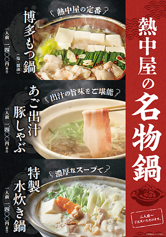 熱中屋名物が盛り沢山◎飲み放題付き宴会コース4,000円~