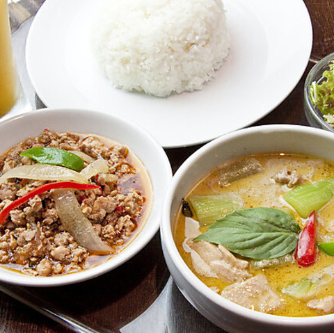 【土日祝限定】ランチFセット ガパオとグリーンカレー2種盛りセット