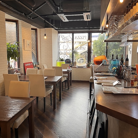 【くつろげる店内◎】カジュアルでおしゃれな雰囲気の店内なので、おひとり様はもちろん、お友達同士、女子会やママ会などのシーンに合わせてご利用いただけます。素材にこだわった本格イタリアンと厳選されたイタリアンワインを楽しみながらゆっくりおくつろぎください♪