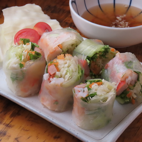 牛すじとこんにゃくを白味噌でじーっくり煮込んだ大阪名物「どて焼き」は、ネギと、山椒で味わう逸品です♪また、本場のベトナムフードもご提供しており、中でも野菜たっぷりの「生春巻き」が大人気!ヘルシーな「フォー」や「バインミー」など、おつまみとしても〆としてもお楽しみいただけます◎