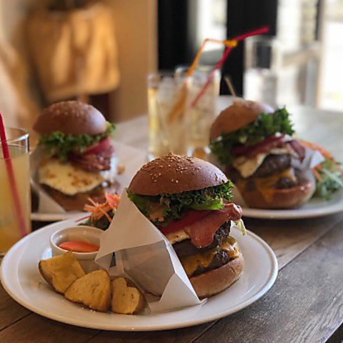 当店を代表する大人気メニューのハンバーガーはもちろん、愛知を中心とした農家から集めた無農薬野菜や地元で育った健康なお肉、天然工房のパンを使ったメニューを各種取り揃えております。