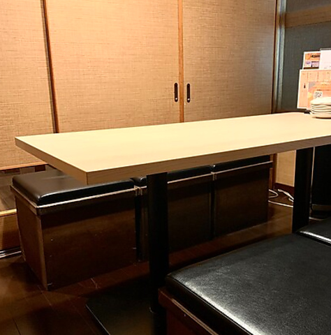 4人がけのお席は、木目の温かみのある落ち着く人気のお席となっています☆ソファー席なので、足元も楽ちん☆