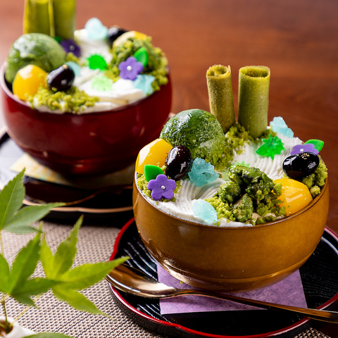 当店は八坂神社や自然に恵まれた環境に位置し、観光や参拝の後のホッと一息にぴったりな温かみのある空間を演出しています。自慢のスイーツ、金の百合亭オリジナル抹茶パフェは、毎月変わるメニューで一年中お楽しみいただけます。使用する抹茶は「北川半兵衛商店」の上質な品で、鮮やかな彩りがテーブルを華やかに彩ります