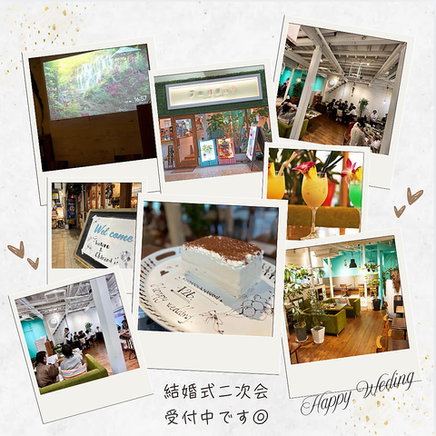 結婚式2次会などのご宴会料理もご用意可能です◎ご宴会料理は、飲み放題付き3500円~ご相談承ります!最大40名様対応可能です◎お気軽にお問合せください♪※お料理の内容は季節などにより変更します。※ウェディングケーキが必要な場合はご相談ください。※その他サービス多数用意ございます。