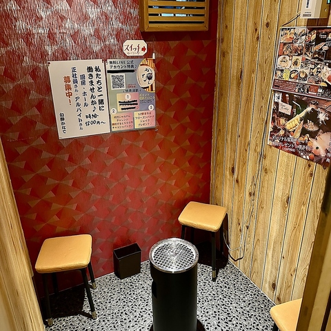 | 個室 | 4名様×1 | 店内には喫煙専用スペースを設けており、愛煙家のお客様にも快適にお過ごしいただけます。分煙を徹底している為、非喫煙者の方も安心!気兼ねなくお食事と会話を楽しめる環境作りを大切にしております。 |