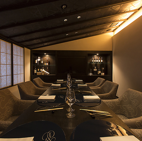 2Fは、1室のみ。最大8名様までご利用頂ける個室となっております。大人のプライベート空間は、接待や女子会など周りを気にせずお寛ぎいただけます。繁多な日常を忘れ、ゆったりとした特別なひとときをお過ごし下さい。