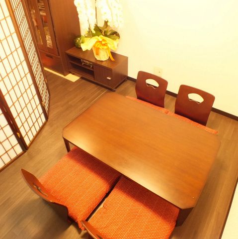 仕切られた個室空間。まるで家にいるような安心できる空間です。仕事帰りの一杯を「おばんざい川」でいかが