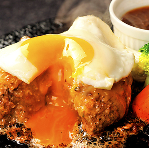人気No.1大人のハンバーグ◆レッドチェダーチーズと紅花たまごの目玉焼き付き!ぜひ一度お召し上がりください。