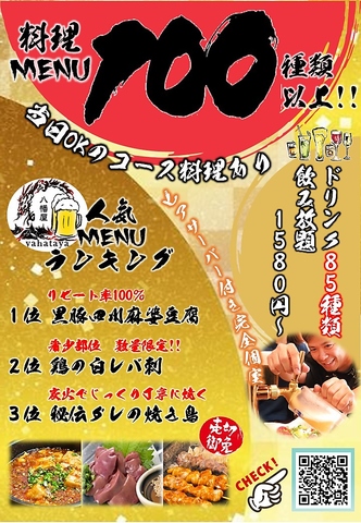 お料理メニュー全100種以上!!ドリンクは85種以上!!