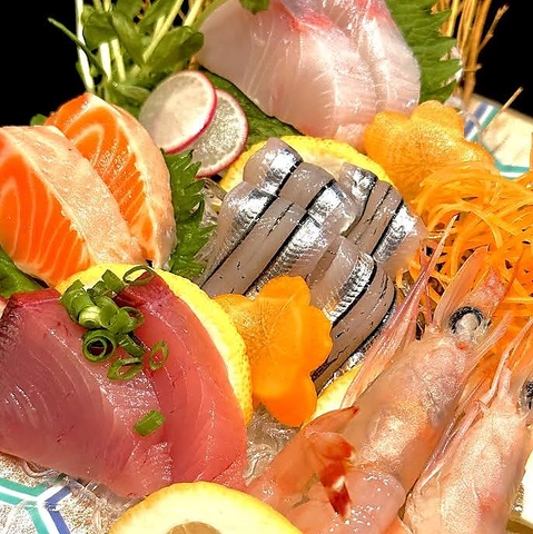 当店では、厳選して仕入れた新鮮な鮮魚を贅沢に厚切りにし、薄切りでは味わえない弾力や歯ごたえ・プリっとした食感を味わっていただけます。また、厚切りにすることで魚本来の旨味や風味が口の中でより長く、強く広がります。