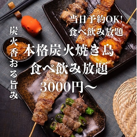 本格炭火の香ばしさ!焼き鳥やもつ鍋 豊富なドリンクが食べ飲み放題3000円~!で心ゆくまで楽しめる!
