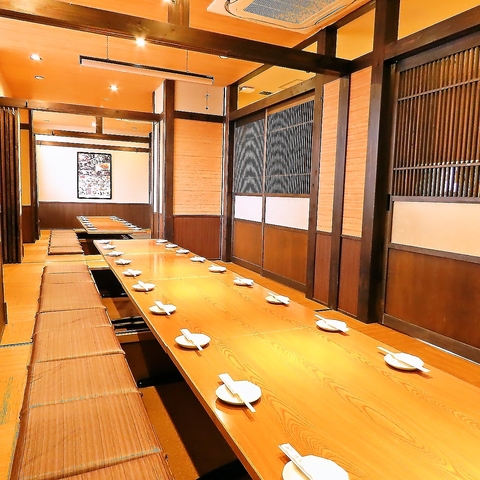 【最大59名様までご利用可能】<10名以上・20名以上・30名以上用途に応じた個室有>掘りごたつのお座敷をはじめ、人数や用途に合わせたお席をご用意可能です。新年会など各種会社宴会や、同窓会、二次会など様々なシーンにご利用いただけます。大人数でのご宴会もお気軽にご相談ください。