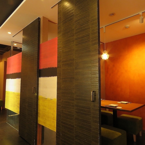 落ち着いた雰囲気の和モダンの個室。ご宴会や接待等様々なシーンに合わせご案内可能です。