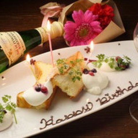 誕生日や記念日のお祝いには、やはりメッセージプレートがあると嬉しいですよね。誕生日のお祝い・結婚のお祝い、歓送迎会などには+1500円(税込)にてデザートプレートをご用意いたします♪お名前入りのメッセージなどのデコレーションや演出についても、お気軽に相談して下さい。全力でやらせて頂きます!
