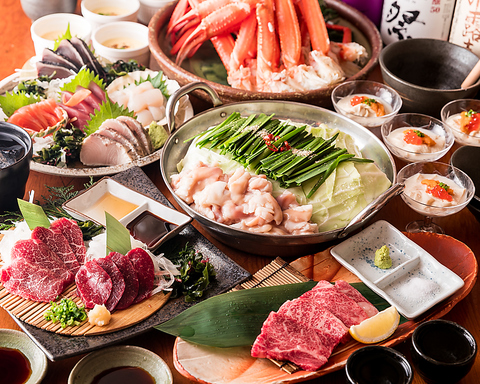 【幹事様必見!】メインは選べる2タイプ【当店自慢のもつ鍋or期間限定のぶりしゃぶ】からお選び頂けます!メイン料理以外も超豪華!さらに週末でも3時間飲み放題付き!忘年会にも最適なコースをご用意しております!