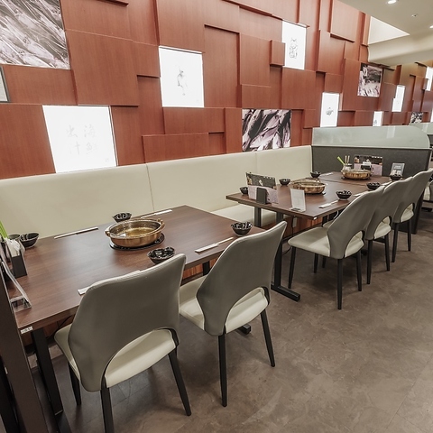 清潔感・柔軟な席配置、通路も広く取っておりどんなお食事シーンにも最適です。多彩なお席をご用意しております♪広々とした座席配置により、隣を気にせずリラックスして過ごせるのが当店のこだわり◎お一人様で静かに嗜む夜も、仲間と賑やかに語らう宴会も、すべてを優しく包み込む懐の深い空間デザインです!