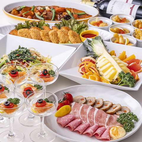 【立食・ビュッフェスタイルもOK!】立食・ビュッフェ・着席スタイルの3パターンからシーンに合わせた宴会形式をお選びいただけます。カジュアルな交流会からフォーマルなパーティーまで、柔軟に対応可能です。ご要望に応じた最適なスタイルで、思い出に残るひとときを演出します。