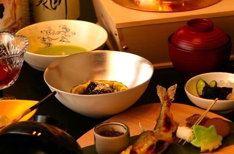 旬の食材をふんだんに取り入れた懐石料理。お料理、器、盛り付けで季節の移ろいを五感でお愉しみ頂けます