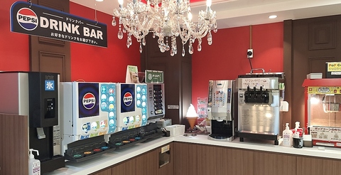 リニューアル!ドリンク総数41種類のドリンクバー設置!ソフトクリームとポップコーンも食べ放題!