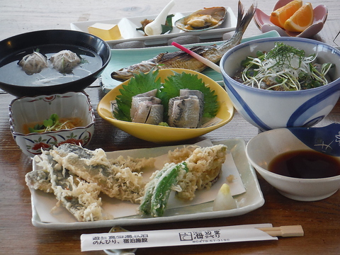 脂がのったマイワシを素材に刺身、天ぷら、などを御膳の味は格別!¥3000