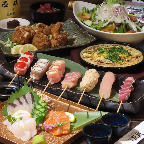 魚も串もお肉も!炭蔵では地産地消の食材を使用した拘りのコースをご用意しています。飲み放題付きになります!