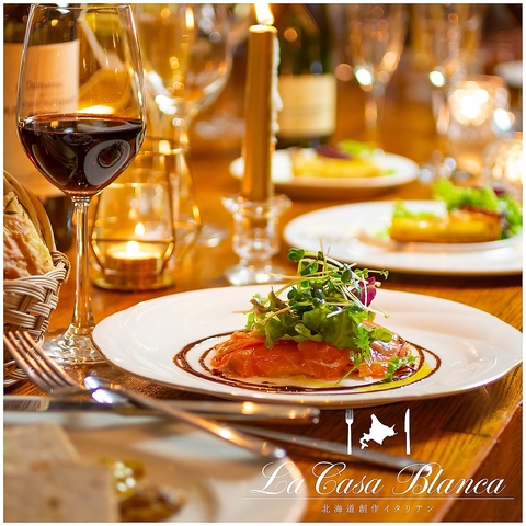 北海道産小麦を使用した自家製生地のピザや、北海道産黒毛和牛のグリル、エビとアボカドのイタリアンサラダ、ズワイガニのトマトクリームパスタ、厳選した魚介を使ったお料理等シーンに合わせた上質なイタリアンをお楽しみ下さい。