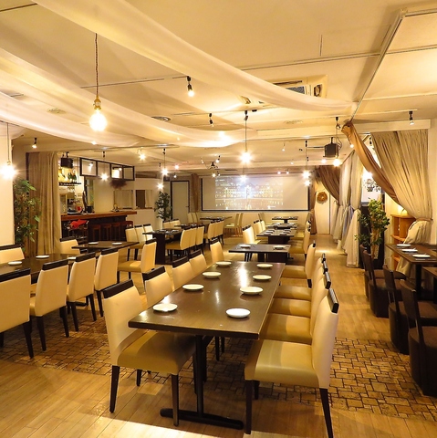 広々とした店内だから出来る席と席の感覚を開けてパーテーションやカーテンで仕切る事も可能☆なので15名様~の半個室席もご用意可能です☆ご友人や同僚と安心してお食事が楽しめます♪フロア貸切で各種ご宴会や結婚式2次会にもご利用いただけます。