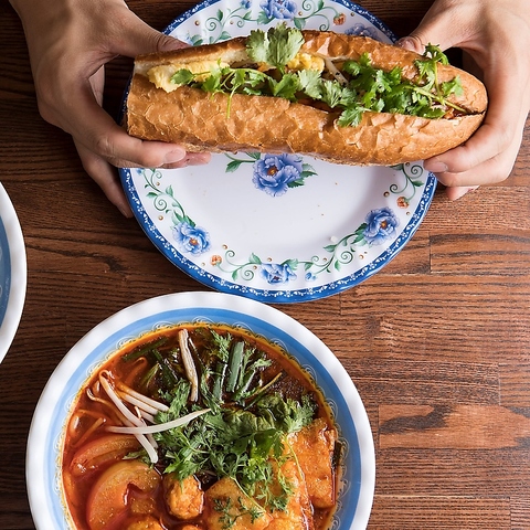 当店の自慢は、2003年に開発した国産米を使用した《生めんフォー》です!日本のお米の美味しさを最大限に活かし、自社で製麺しているこだわりの一品。またバインミーはベトナムの老舗ベーカリーで習得した製法を活かし、自社製パン所で毎日焼き上げております。ぜひ一度お試しください!