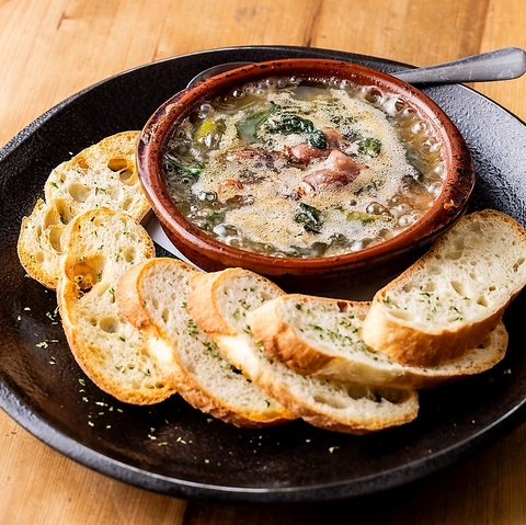 青森にんにくと白ワインをベースにした東北の食材と野菜のアヒージョです!主に具材3種類からお選びいただきます!