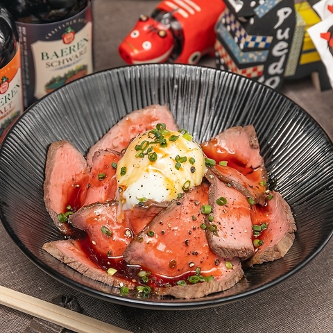 5種類のランチはすべておすすめですが…人気No.1は『ローストビーフ丼』!低温調理でしっとり柔らかく仕上げたローストビーフはジューシーで絶品です☆お米は山形県産の【はえぬき】を使用。自家製ドレッシングのサラダ、漬物、味噌汁もついた、お得なランチメニューをぜひ!