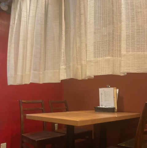 【テーブル:最大4名様掛け】ご家族でのランチやディナーにも◎赤を基調とした配色とインテリアの木目の温かさは、旅先の方な雰囲気も醸し出しています♪