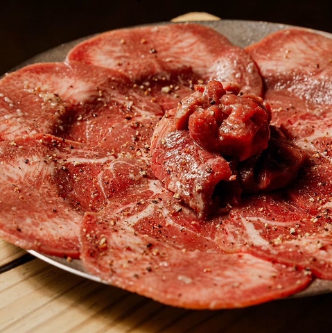 舌触りの良い薄切りタンとコリコリ食感の切り落としタンの2種類。特製塩タレで和えたタンはお酒にもご飯にも合います。美味しさに磨きをかけた焼肉の定番のタンをまずはご注文ください