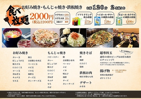 地域一番店を目指して♪お好み焼きだけでなく、おつまみメニューや鉄板焼きメニューも充実しているので、居酒屋使いもOK!学生にも大人気の超お得な食べ放題・飲み放題コースもございます!ランチも11:30~14:00まで元気に営業中です!是非、お立ち寄りくださいませ♪