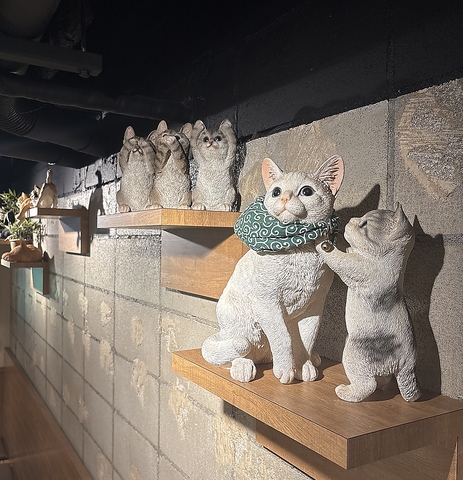 猫好き集まれ♪「猫屋」という名前通り、店内にはかわいい猫の置物や飾りでいっぱい!かわいいもの好きの方は、雰囲気にも満足していただけるはずです。