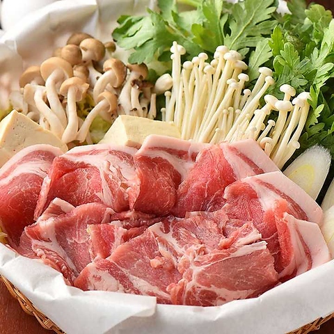 当店の豚肉は和豚もちぶたを使用しています。和豚もちぶたの肉は、美しいピンク色できめが細かく、艶やか。脂の甘みがとっても美味しいお肉です!この和豚もちぶたの豚しゃぶ、すき焼きと串焼き・串揚げ・もつ煮などが楽しめます。ぜひ味わってみてください。